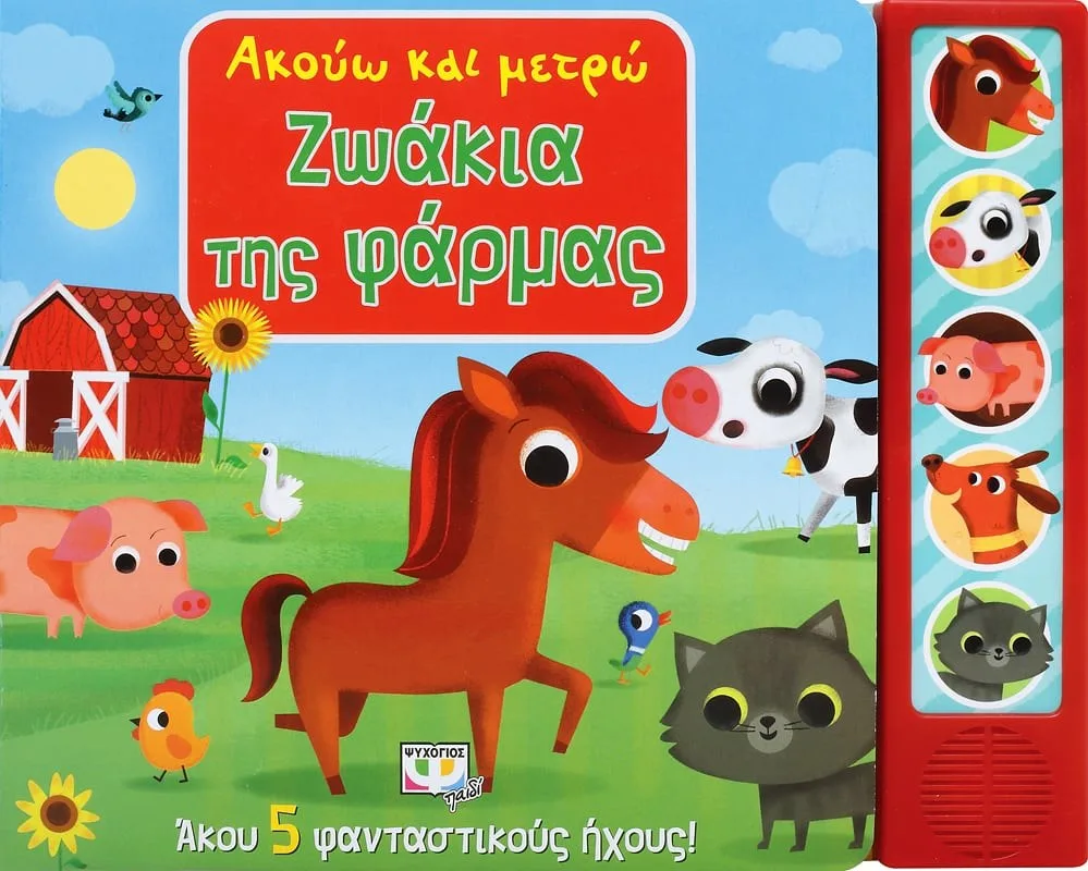 1 αλογάκι χλιμιντρίζει ,2 αγελάδες μουκανίζουν…Μέτρησε, πάτησε, άκουσε και μάθε!Οι μικροί μας φίλοι θα γνωρίσουν σε αυτότο βιβλίο με τις υπέροχες εικόνες πολλάφασαριόζικα ζωάκια της φάρμας, καθώςθα τα ακούν και θα τα μετρούν.