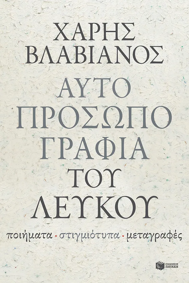 Στην “Αυτοπροσωπογραφία του λευκού” ο Χάρης Βλαβιανός, επτά χρόνια μετά την τελευταία του ποιητική κατάθεση, επανέρχεται, με βλέμμα ανανεωμένο, σε γνώριμους τόπους της ποίησής του, διευρύνοντας ακόμη περισσότερο το πεδίο των στοχαστικών και γλωσσικών του αναζητήσεων. Ο απολεσθείς παράδεισος του οριστικά χαμένου αλλά εξακολουθητικά αναζητούμενου νοήματος, η επισφάλεια των λέξεων ενώπιον του τραύματος του παρελθόντος, αλλά και η αδυναμία επικοινωνίας στις καθημερινές επαφές, η διακειμενικότητα ως καταστατική συνθήκη της ποιητικής γραφής, ο ποιητής ως κρίκος μιας μακράς αλυσίδας ετερόκλητων προγόνων της εγχώριας όσο και εν γένει της δυτικής λογοτεχνικής παράδοσης είναι ζητήματα που διατρέχουν, φανερά ή υπογείως, και τις πέντε ενότητες της συλλογής.