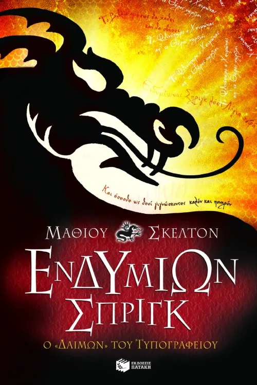 Ένα βιβλίο από δέρμα δράκου, που κρύβει στις σελίδες του όλη τη σοφία του κόσμου, διαλέγει δυο παιδιά για να τους αποκαλύψει τα μυστικά του. O «δαίμων του τυπογραφείου», βοηθός του Γουτεμβέργιου Ενδυμίων Σπρινγκ, ζει στη Μαγεντία του 15ου αιώνα, ενώ ο δωδεκάχρονος Μπλέικ, στη σημερινή Οξφόρδη. Τα δυο αγόρια κάνουν την ίδια φοβερή ανακάλυψη: το βιβλίο διψά για αθώο παιδικό αίμα…
