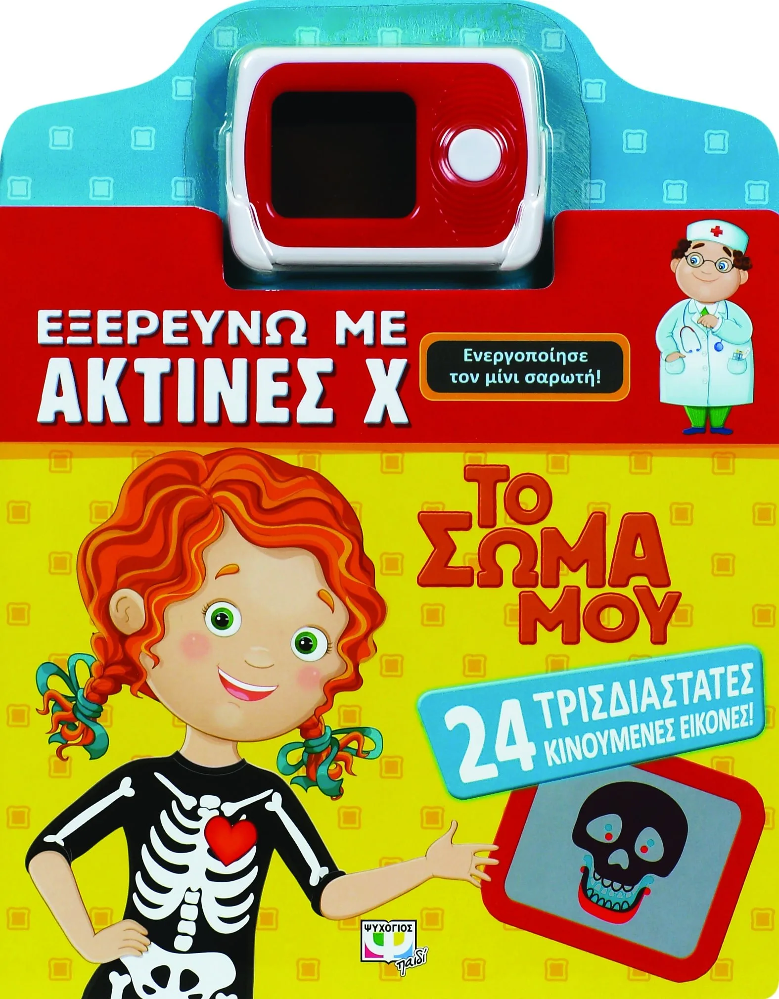Θέλεις να δεις την ακτινογραφία ενός κρανίου και πώς η καρδιά πάλλεται για να στείλει αίμα σε όλο το σώμα; Θέλεις να δεις πώς λειτουργούν οι πνεύμονες και πώς κινούνται οι μύες; Ενεργοποίησε τον μίνι σαρωτή και άνοιξε το βιβλίο για να δεις τι γίνεται μέσα στο ανθρώπινο σώμα!