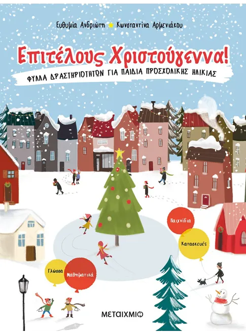 Ένα πρωτότυπο γιορτινό βιβλίο-ημερολόγιο με ευχάριστες, διαθεματικές δραστηριότητες, που θα απασχολήσει δημιουργικά τα παιδιά προσχολικής ηλικίας, καθώς θα μετρούν αντίστροφα τον χρόνο και θα περιμένουν τις γιορτές, αλλά και κατά τη διάρκεια των σχολικών τους διακοπών.