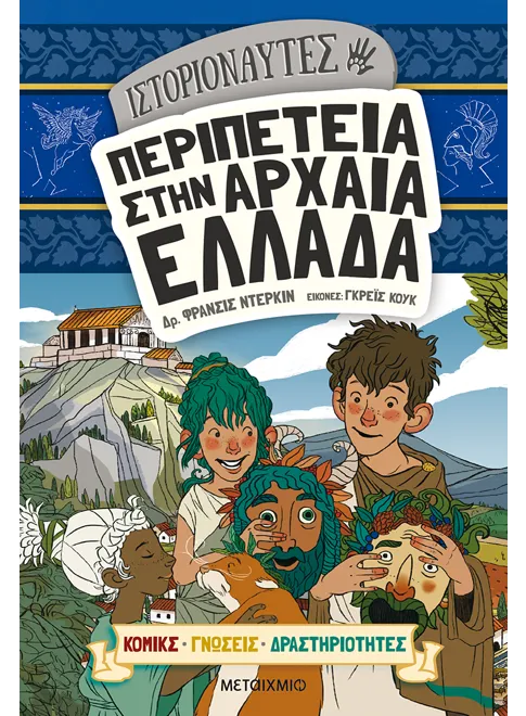 Οι Ιστοριοναύτες ταξιδεύουν πίσω στον χρόνο, στην αρχαία Ελλάδα, και χρειάζονται τη βοήθειά σου για να ανακαλύψουν τα μυστικά του παρελθόντος. Ακολούθησέ τους καθώς επισκέπτονται την Ακρόπολη, συμμετέχουν σε αθλητικούς αγώνες και βάφουν μάσκες για μια τραγωδία που πρόκειται να παιχτεί στο θέατρο. Δες την Ιστορία να ζωντανεύει, μάθε ένα σωρό πράγματα για την αρχαία Ελλάδα και διασκέδασε με τις δραστηριότητες και τα παιχνίδια που θα βρεις σ΄ αυτό το υπέροχο βιβλίο.