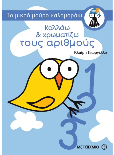 Το παιδί κολλάει και χρωματίζει τους αριθμούς (1-10), και διασκεδάζει μαθαίνοντας, παρέα με τον φίλο του, το μικρό μαύρο καλαμαράκι.