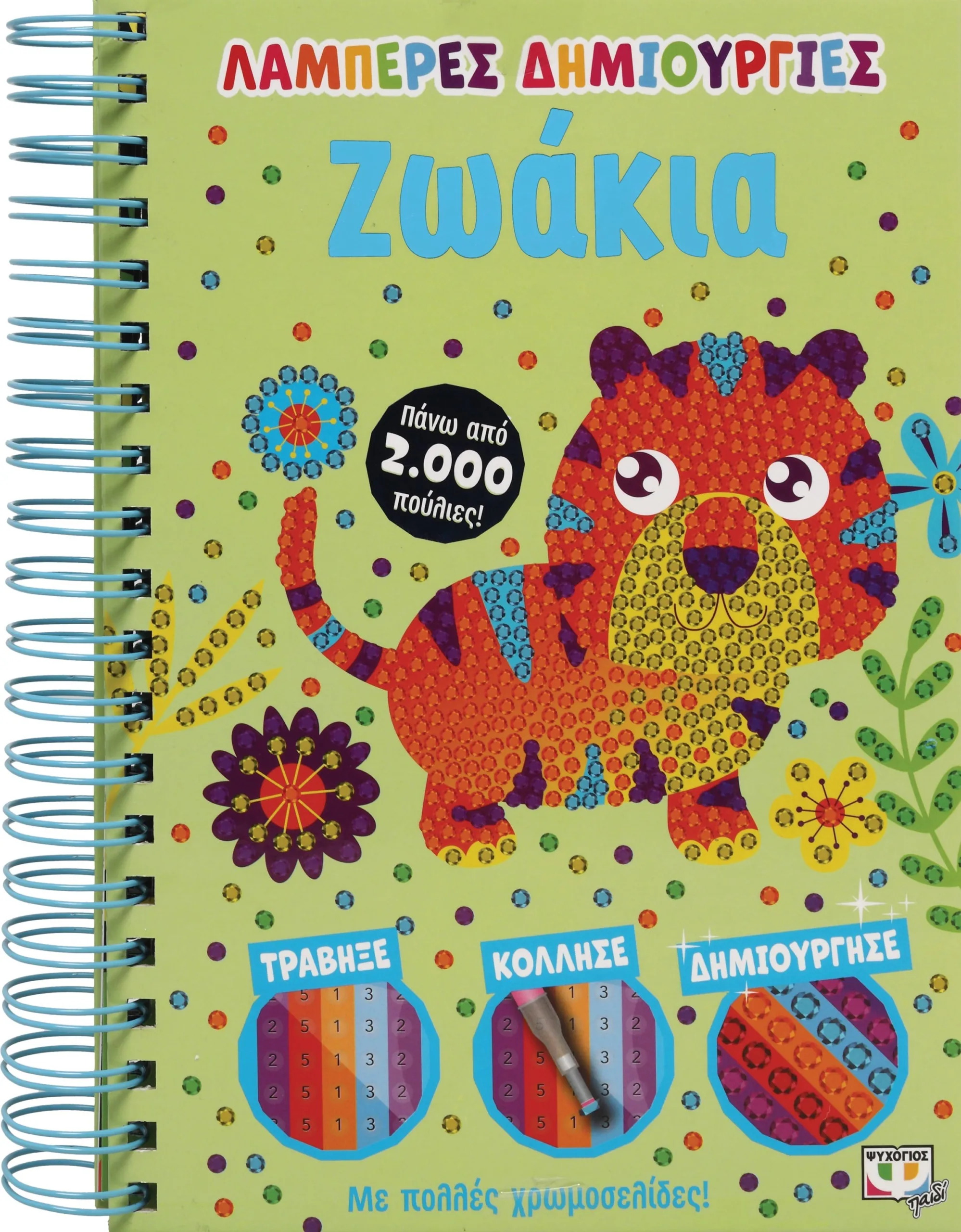 Ετοιμάσου να θαμπώσεις με τις δημιουργίες σου!Φτιάξε εντυπωσιακά έργα τέχνης με πάνω από 2.000 αστραφτερές πούλιες σε διάφορα χρώματα. Είναι τόσο απλό και διασκεδαστικό – απλώς τράβηξε την προστατευτική διαφάνεια και κόλλησε τις πούλιες για να δημιουργήσεις λαμπερές εικόνες, κάρτες, φιγούρες και άλλα πολλά! Στόλισε και δώσε λάμψη σε υπέροχα ζωάκια από εντυπωσιακά παγόνια μέχρι χαριτωμένα τιγράκια! Επιπλέον, μπορείς να ζωντανέψεις με τα αγαπημένα σου χρώματα τις απίθανες χρωμοσελίδες.Πάμε να δημιουργήσουμε!