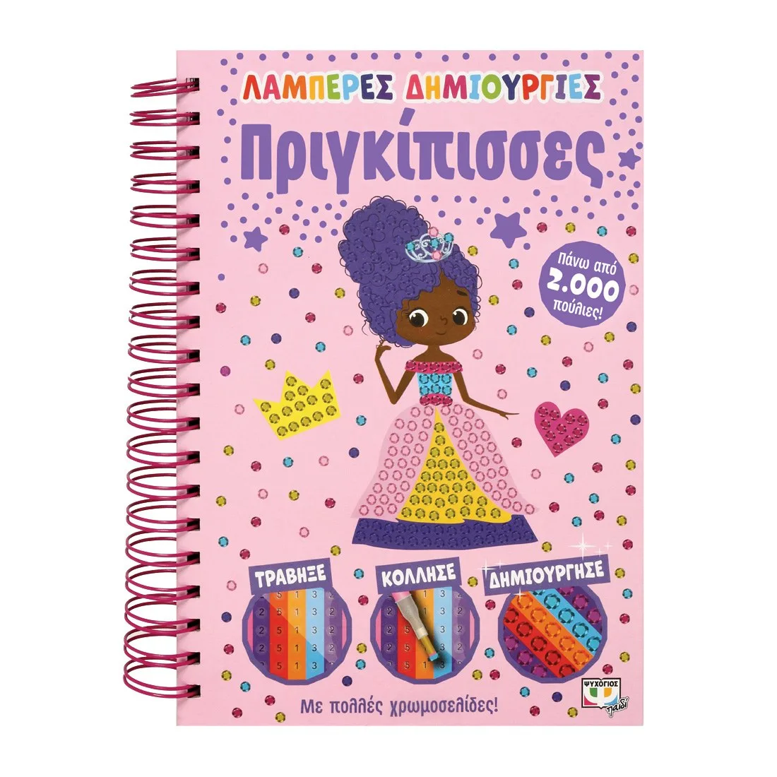 Ετοιμάσου να θαμπώσεις με τις δημιουργίες σου!Φτιάξε εντυπωσιακά έργα τέχνης με πάνω από 2.000 αστραφτερές πούλιες σε διάφορα χρώματα. Είναι τόσο απλό και διασκεδαστικό – απλώς τράβηξε την προστατευτική διαφάνεια και κόλλησε τις πούλιες για να δημιουργήσεις λαμπερές εικόνες, κάρτες, φιγούρες και άλλα πολλά! Στόλισε και δώσε λάμψη σε πανέμορφες πριγκίπισσες, σε ένα πριγκιπικό πόνι και μια βασιλική άμαξα! Επιπλέον, μπορείς να ζωντανέψεις με τα αγαπημένα σου χρώματα τις απίθανες χρωμοσελίδες.Πάμε να δημιουργήσουμε!