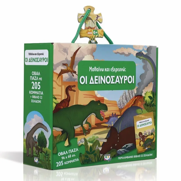 Ανακάλυψε τα γιγάντια ερπετά που κυριαρχούσαν στη Γη πριν από εκατομμύρια χρόνια!Διάβασε το βιβλίο και μάθε πώς δημιουργείται ένα απολίθωμα, τα ονόματα των πιο σπουδαίων δεινόσαυρων και συναρπαστικές πληροφορίες για αυτούς! Ύστερα, διασκέδασε ενώνοντας τα κομμάτια του παζλ!