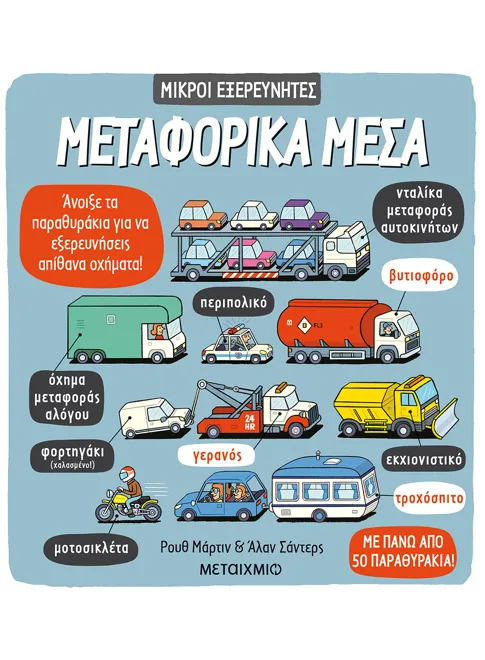 Καλούμε όλους τους Μικρούς Εξερευνητές! Ας ρίξουμε μια ματιά στον κόσμο των μετακινήσεων για να ανακαλύψουμε όλους τους θαυμαστούς τρόπους με τους οποίους ταξιδεύουμε. Άνοιξε τα παραθυράκια για να δεις ποιος κινείται και τι παίρνει μαζί του. Βάλε μπρος τις μηχανές και φύγαμε για εξερεύνηση!
