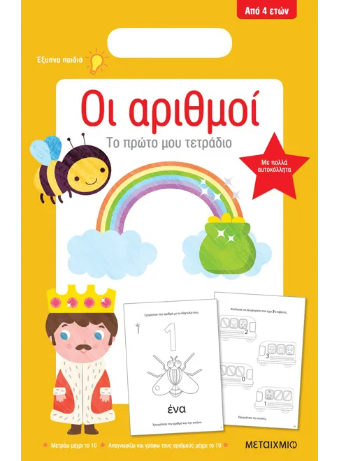 Η μάθηση γίνεται παιχνίδι χάρη στις απλές δραστηριότητες που στοχεύουν στην άσκηση οπτικοκινητικών δεξιοτήτων και στη γνωριμία με τους αριθμούς: αναγνώριση, μέτρηση, γραφή των αριθμών από το 1 μέχρι το 10.