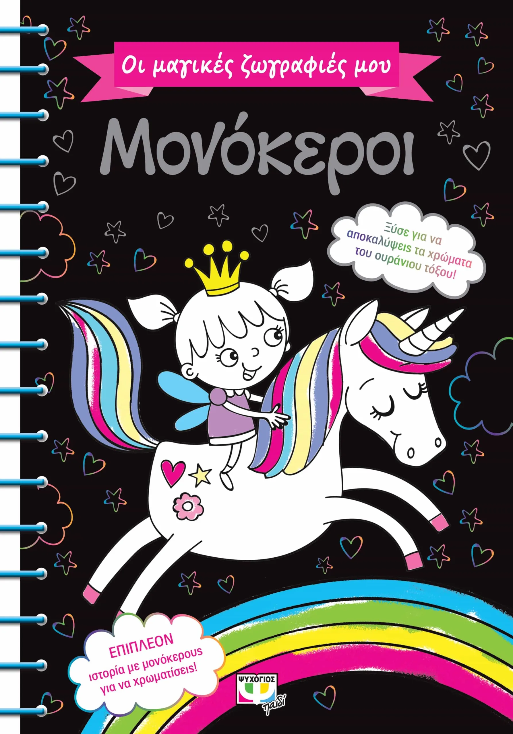 Ξύσε µε το µαγικό µολύβι σου τις υπέροχες εικόνες για να αποκαλύψεις τα κρυµµένα χρώµατα του ουράνιου τόξου. Ύστερα, πάρε τους µαρκαδόρους ή τις ξυλοµπογιές που αγαπάς για να ζωντανέψεις µια απίθανη ιστορία µε θέµα τους µονόκερους.