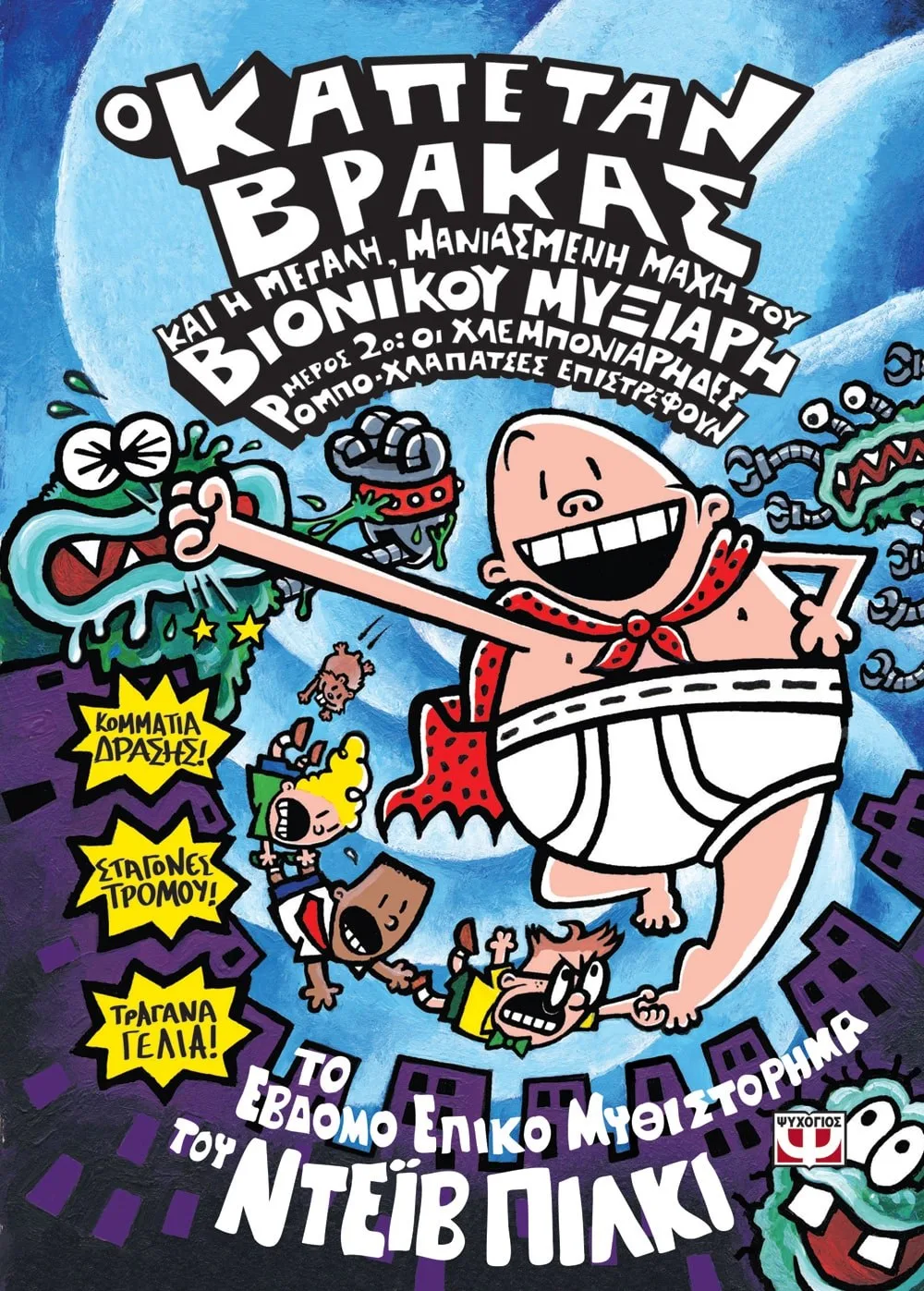 ΣΕΙΡΑ ΜΑΣ ΤΩΡΑ!Πάνω που νόμιζαν ότι είχαν γλιτώσει, άντε πάλι τα ίδια! Ο Βιονικός Μυξιάρης ηττήθηκε, όχι όμως και οι Χλεμπονιάρηδες Ρομπο-Χλαπάτσες. Ακολουθήστε τον Τζορτζ, τον Χάρολντ, τον κύριο Κρουπ, τον Μέλβιν Σνίντλι και τον Σούλου, το βιονικό χάμστερ, σε μια περιπέτεια από τα βάθη του Διαστήματος ως το μυστηριώδες και αχαρτογράφητο προχθές! Θα συντρίψετε τέρατα, θα παλέψετε με ρομπότ, θα ταξιδέψετε στον χρόνο, θα αλλάξετε μυαλά… θα περάσετε καλά τέλος πάντων!ΠΕΡΙΕΧΕΙ ΤΟ ΦΛΙΠ-Ο-ΡΑΜΑ!Την πρωτοποριακή τεχνική παγκοσμίου φήμης που σας επιτρέπει να ζωντανέψετε τις σκηνές δράσης!