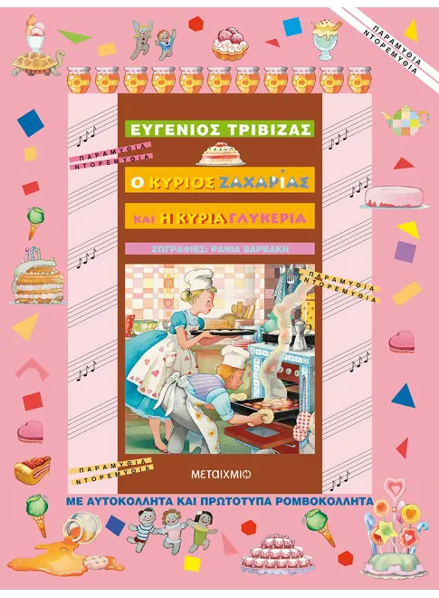 Το πιο μελιστάλακτο παραμύθι όλων των εποχών! Ποτέ τόσο πολλές λιχουδιές δε χώρεσαν μέσα στην ίδια ιστορία! Ένα βιβλίο γεμάτο καραμέλες, κουλουράκια, αμυγδαλωτά, μπακλαβαδάκια και πεντανόστιμα παγωτά. Ο κύριος Ζαχαρίας και η κυρία Γλυκερία γνωρίζονται ένα πρωί έξω από ένα ζαχαροπλαστείο και ανταλλάσσουν χαμόγελα, φιλάκια και ζαχαρωτά. Ο ρομαντικός περίπατος καταλήγει σε μία κουζίνα, όπου οι δύο ερωτευμένοι δεν κρατιούνται από τη χαρά τους και αποφασίζουν να κάνουν μια τρέλα που δεν έχει ξαναγίνει! Έτσι, αρχίζει ένα ξεκαρδιστικό ξεφάντωμα, μία λαχταριστή πανδαισία με αλευροκοσκινίσματα, αμυγδαλοκαβουρντίσματα, μαρμελαδογλιστρήματα και σοκολατοπασαλείμματα. Το αποτέλεσμα των προσπαθειών τους θα καταπλήξει ακόμα και τον πιο απαιτητικό λιχούδη αναγνώστη!