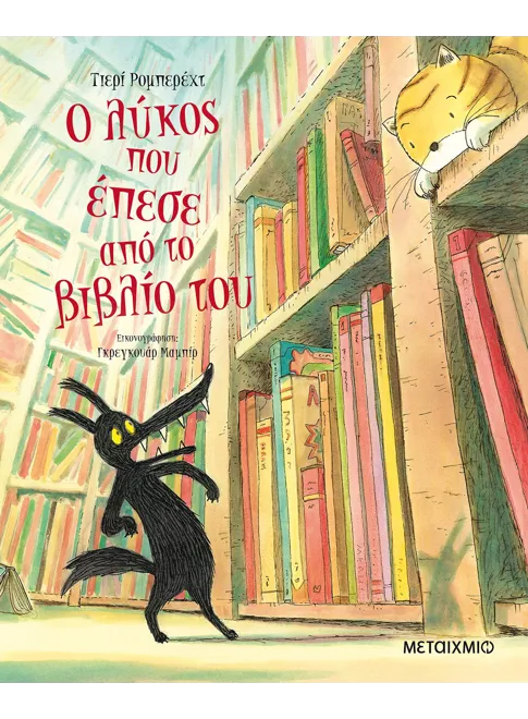 Μέσα σ’ ένα ανάστατο παιδικό δωμάτιο, ένα βιβλίο γλιστρά από τη βιβλιοθήκη… Έτσι, ο λύκος της ιστορίας πέφτει από το βιβλίο και βρίσκεται ολομόναχος μέσα στο δωμάτιο. Ολομόναχος; Όχι! Ένας γάτος καραδοκεί και ξερογλείφεται, κι ο λύκος πρέπει να βρει γρήγορα έναν τρόπο να γλιτώσει. Κι αν δοκίμαζε να χωθεί σε κάποιο άλλο βιβλίο;