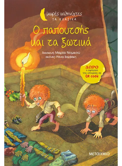 Μια φορά κι έναν καιρό, ένας παπουτσής δεν κατάφερνε να πουλήσει τα παπούτσια που έφτιαχνε και ζούσε µέσα στη φτώχεια. Όταν πια του τέλειωσαν εντελώς τα χρήµατα και του έµειναν υλικά για να φτιάξει ένα τελευταίο ζευγάρι παπούτσια πριν κλείσει για πάντα το µικρό µαγαζί του, συνέβη κάτι πολύ περίεργο. Βρήκε τα πιο όµορφα παπούτσια που είχε δει ποτέ του έτοιµα στον πάγκο του και µάλιστα δεν είχαν φτιαχτεί από ανθρώπου χέρι…