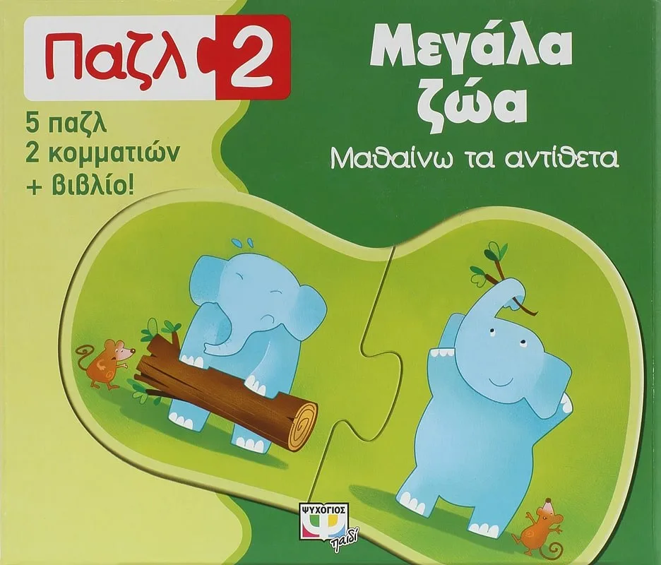 Το παιδί σας θα µάθει τα αντίθετα φτιάχνοντας τα παζλ που υπάρχουν στο κουτί. Διαβάστε µαζί του το βιβλιαράκι και διασκεδάστε µε τα πιο µεγάλα ζώα του κόσµου!