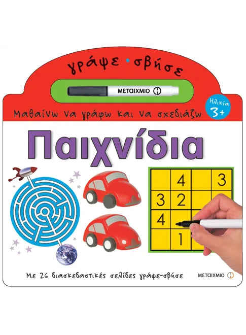 Σουντόκου, λαβύρινθοι, σταυρόλεξα, τελίτσες, αριθμητικές πράξεις κι ένα σωρό παιχνίδια που βοηθούν τη νοητική ανάπτυξη. Ένα μοναδικό βιβλίο γεμάτο δραστηριότητες, με έναν ειδικό μαρκαδόρο που επιτρέπει στο παιδί να γράφει και να σβήνει ξανά και ξανά, σκουπίζοντας με ένα κομμάτι ύφασμα.