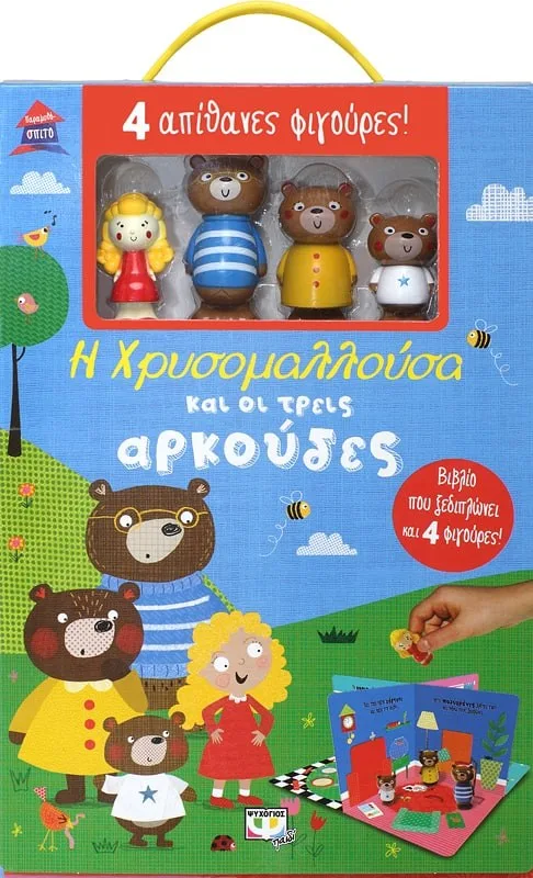 Ακολούθησε τη Χρυσομαλλούσα καθώς εξερευνά το σπίτι των αρκούδων! Ξεδίπλωσε τα τρισδιάστατα σκηνικά του βιβλίου και διάβασε το παραμύθι καθώς παίζεις µε τις τέσσερις φιγούρες!