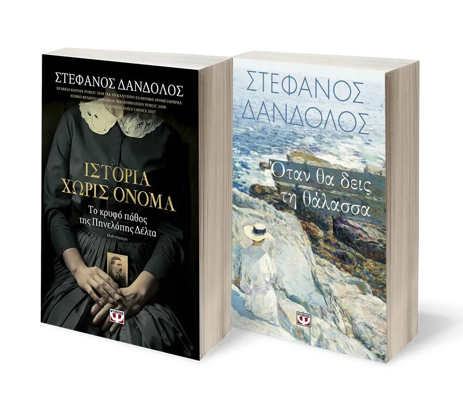 ΙΣΤΟΡΙΑ ΧΩΡΙΣ ΟΝΟΜΑΤο ξέρω πως είμαι τρελή∙ μα η αγάπη κάποιον τρελαίνει…Ιούνιος του 1908. Η Πηνελόπη Δέλτα βρίσκεται σε ένα σανατόριο στα περίχωρα της Βιέννης. Είναι μια γυναίκα με κηλιδωμένη ζωή. Σε αυτό το άσυλο των ταλαιπωρημένων ψυχών, μακριά από τις κόρες της, την έστειλαν για να ξεχάσει τον Ίωνα Δραγούμη, τον γοητευτικό διπλωμάτη που αγάπησε παράφορα, τον άνθρωπο που έγινε η αιτία να κλυδωνιστεί ο γάμος της. Όμως η επίσκεψή του εκεί τα αλλάζει όλα. Με φόντο τις καταπράσινες ερημιές και τα μεσαιωνικά πλακόστρωτα της κεντρικής Ευρώπης θα παλέψει για τη λύτρωση της καρδιάς της, ζώντας μαζί του τρεις μέρες που θα τη σημαδέψουν για πάντα.Τριάντα τρία χρόνια αργότερα, τον Απρίλιο του 1941, οι Γερμανοί εισβάλλουν στην Αθήνα, και εκείνη, καθηλωμένη στο σαλόνι του σπιτιού της στην Κηφισιά, επιχειρεί τον τελευταίο απολογισμό της ζωής της, έχοντας πάρει μια μοιραία απόφαση. Να ανταμώσει στον ουρανό τον άντρα που στερήθηκε κάποτε.Το ΙΣΤΟΡΙΑ ΧΩΡΙΣ ΟΝΟΜΑ είναι ένα βαθιά συγκινητικό μυθιστόρημα για το πάθος και την απώλεια, για τον έρωτα και τη μνήμη, για τις δεσμεύσεις της οικογένειας, για το σκοτάδι του πολέμου και τις πιο δραματικές στιγμές της Ελλάδας. Βασισμένος στα ημερολόγιά της, ο Στέφανος Δάνδολος αποτίει φόρο τιμής στον εύθραυστο ψυχισμό της σπουδαιότερης Ελληνίδας συγγραφέως του εικοστού αιώνα.ΟΤΑΝ ΘΑ ΔΕΙΣ ΤΗ ΘΑΛΑΣΣΑΕίναι ο έρωτας μια ψυχή εγκλωβισμενη‎ σε δύο κορμιά;Και πόσο εύκολο είναι να εξεγερθεις ενάντια στη μοίραπου έχει ήδη οριστεί για σένα;Αθήνα, 1886. Η ζωή της Μαργαρίτας βυθίζεται μέσα σε έναν γάμο που μοιάζει με αργό θάνατο. Ώσπου ερωτεύεται παράφορα έναν άντρα που νομιζε ότι υπήρχε μόνο στα παραμύθια. Και όλος ο κόσμος της γίνεται μια μάχη ανάμεσα στο φως και το σκοτάδι.Αυτή είναι η ιστορία μιας γυναίκας που παρασύρθηκε στη δίνη του πάθους, διεκδικώντας ένα διαφορετικό πεπρωμένο από κείνο που της είχαν σχεδιάσει.Είναι η ιστορία των δύο αντρών που την αγάπησαν. Του ισχυρού συζύγου της, που ήρθε στην Ελλάδα έχοντας καταστρώσει ένα σχέδιο προς όφελος των ξένων δανειστών. Και του μαγικού εραστή της, που ανέλαβε να σχεδιάσει τη σιδηροδρομική γραμμή της Πελοποννήσου, ένα από τα μεγάλα έργα του Τρικούπη.Είναι επίσης πολλές μικρές ιστορίες που ιχνηλατούν τη γέννηση του γυναικείου κινήματος στην Αθήνα, τις πολιτικές αναταράξεις, τον ρόλο της εύπορης τάξης στο πεπρωμένο της φτωχολογιάς, και τα βήματα μιας Ελλάδας που προσδοκά ένα καλύτερο αύριο.Και, τέλος, είναι μια ιστορία σαγήνης και μυστηρίου σε ένα παραθαλάσσιο χωριουδάκι, χρόνια αργότερα, λίγο μετά τη λήξη του Πρώτου Παγκοσμίου Πολέμου, όταν όλα έχουν κριθεί, ή σχεδόν όλα…Ένα σαρωτικό μυθιστόρημα για τον έρωτα και την ελπίδα. Μια επική τοιχογραφία για τη μεγαλύτερη επανάσταση της ψυχής, που δεν είναι άλλη από την επιμονή στα θαύματα.