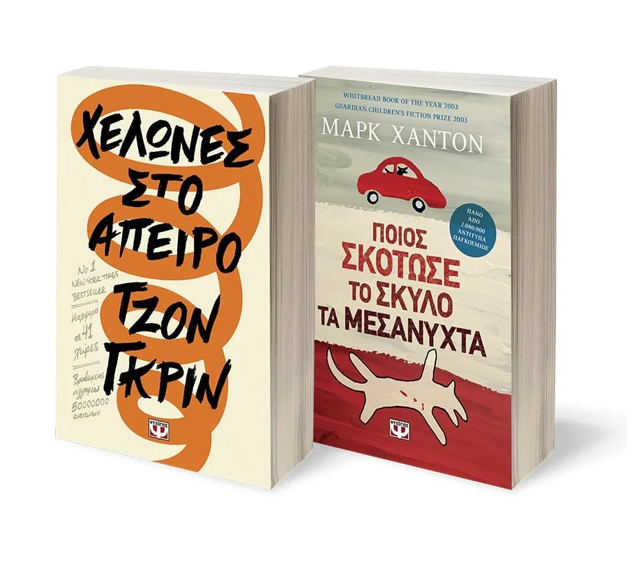 ΠΟΙΟΣ ΣΚΟΤΩΣΕ ΤΟ ΣΚΥΛΟ ΤΑ ΜΕΣΑΝΥΧΤΑΟ Κρίστοφερ είναι ένας παράξενος νέος. Ξέρει όλα τα κράτη και τις πρωτεύουσες του κόσμου, ξέρει πάρα πολλά για τα μαθηματικά και πολύ λίγα για τους ανθρώπους. Του αρέσει να φτιάχνει χάρτες και σχεδιαγράμματα, λατρεύει τα αστυνομικά μυθιστορήματα και το κόκκινο χρώμα. Δεν του αρέσει το κίτρινο και το καφέ, δεν αντέχει να τον αγγίζουν και δεν μπορεί να πει ψέματα. Όταν βρίσκει νεκρό το σκύλο της γειτόνισσάς του, βάζει σκοπό να ξεδιαλύνει το μυστήριο. Η αναζήτησή του όμως θα τον παρασύρει σε μονοπάτια δύσβατα… Ένα διεθνές μπεστ σέλερ που απέσπασε διθυραμβικές κριτικές σ’ όλο τον κόσμο.ΧΕΛΩΝΕΣ ΣΤΟ ΑΠΕΙΡΟΗ δεκαεξάχρονη Άζα δε θα σκεφτόταν ποτέ να λύσει το μυστήριο του εξαφανισμένου δισεκατομμυριούχου Ράσελ Πίκετ. Αλλά η αμοιβή είναι εκατό χιλιάδες δολάρια, και η Καλύτερη και Πλέον Ατρόμητη φίλη της, η Ντέιζι, θέλει οπωσδήποτε να προσπαθήσει. Έτσι, αρχίζουν την έρευνα, που θα τις φέρει στον κόσμο του Ράσελ Πίκετ και του γιου του, του Ντέιβις, με τον οποίο τις ενώνουν πολλά – και τις χωρίζουν ακόμη περισσότερα…Η Άζα προσπαθεί. Προσπαθεί να είναι καλή κόρη, καλή φίλη, καλή μαθήτρια, ακόμη και καλή ντετέκτιβ, την ίδια στιγμή που τα αισθήματά της και οι φόβοι της γίνονται ένα όλο και πιο μπερδεμένο κουβάρι.Ο διάσημος συγγραφέας του παγκόσμιου εκδοτικού φαινόμενου Το λάθος αστέρι σκιαγραφεί την ηρωίδα του με συγκινητική τόλμη και ειλικρίνεια, σ’ ένα μυθιστόρημα για την αγάπη, τη δύναμη της ψυχής και τις φιλίες που κρατούν για πάντα.