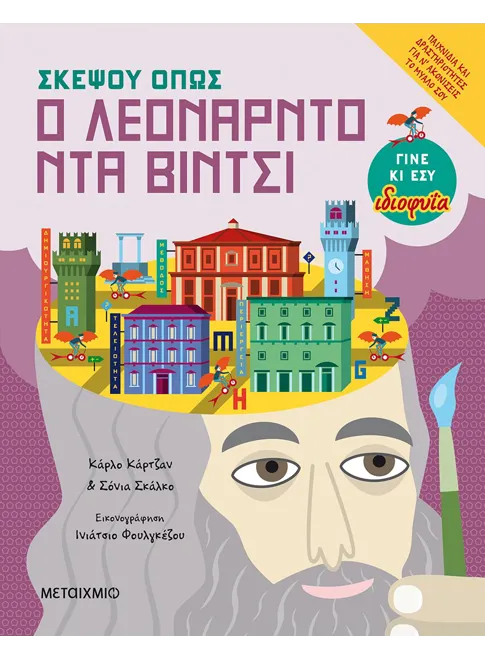 Το βιβλίο αυτό είναι γεμάτο αφηγήσεις, δραστηριότητες και παιχνίδια, για να ανακαλύψεις πώς μπορείς να εκπαιδεύσεις το μυαλό σου στην περιέργεια, στη δημιουργικότητα, την τεχνική και την τελειότητα, ακολουθώντας τα ίχνη του πιο περίπλοκου και πολυεπίπεδου μυαλού όλων των εποχών.