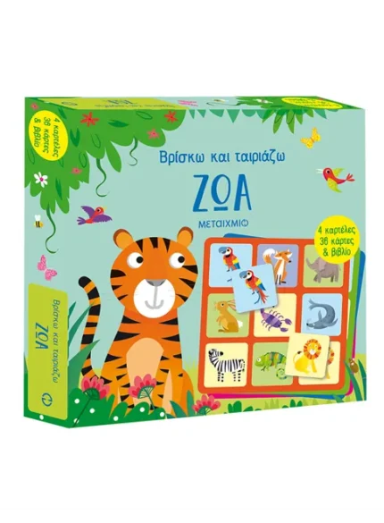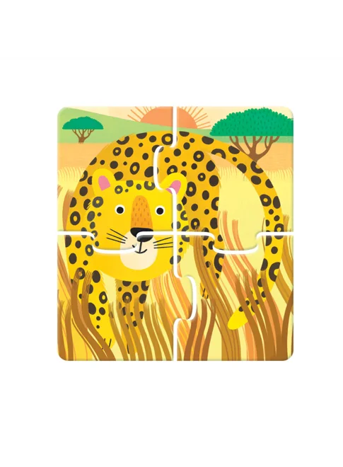 Ένα όμορφο κουτί που περιέχει 4 παζλ 4 κομματιών, καθώς και ένα βιβλίο με στοιχειώδεις πληροφορίες για τα άγρια ζώα.
