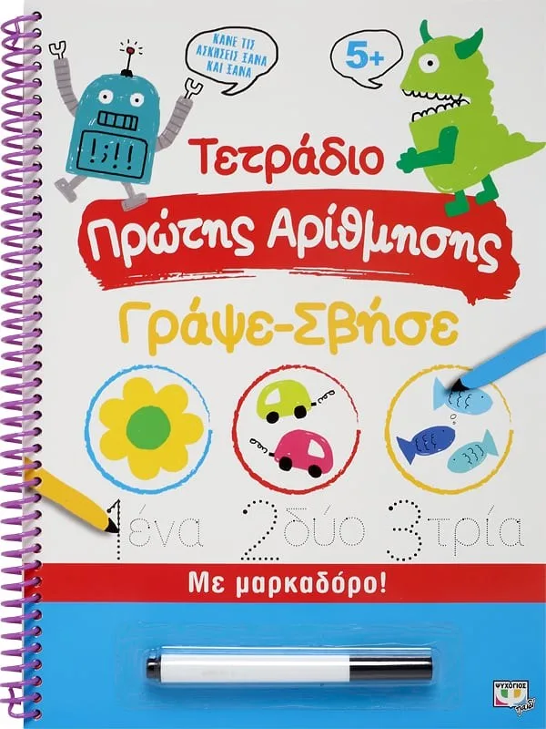 Ας κάνουμε μαζί τα πρώτα βήματα στην εκμάθηση των αριθμών, στο μέτρημα και στα απλά μαθηματικά.• Βοηθά τα παιδιά να αναπτύξουν βασικές δεξιότητες αρίθµησης.• Πολλές διασκεδαστικές ασκήσεις, που µπορούν να γίνουν ξανά και ξανά.• Η απολαυστική εικονογράφηση και ο µαρκαδόρος γράψε-σβήσε κάνουν τη µάθηση παιχνίδι.Μαθαίνει:ΑρίθμησηΠρόσθεσηΑκολουθίεςΑριθμητικά μοτίβα
