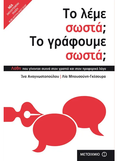 Το βιβλίο αυτό, με απλό και συστηματικό τρόπο, μας βοηθάει να συνειδητοποιήσουμε και να διορθώσουμε τα πιο συνηθισμένα λάθη που κάνουμε συχνά όταν μιλάμε ή όταν γράφουμε.