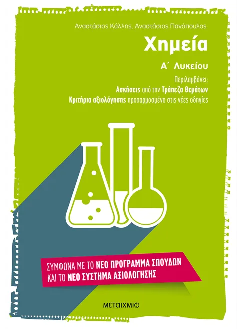 Το βιβλίο αυτό φιλοδοξεί να συμβάλει στη σωστή προετοιμασία των μαθητών της Α’ Λυκείου στο μάθημα της Χημείας. Προσαρμοσμένο στις νέες διδακτικές ανάγκες και το νέο πλαίσιο αξιολόγησης, αποτελεί μια συγκροτημένη πρόταση για τη διδασκαλία και την εξέταση του μαθήματος.