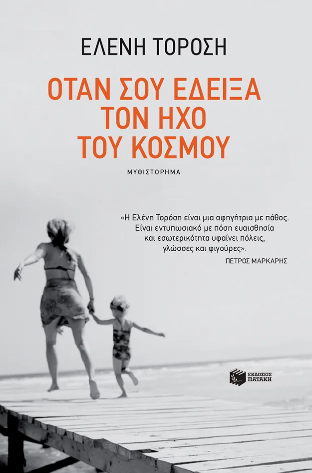 «Πώς νιώθει ένα παιδί και πώς το διαμορφώνει μια σχέση απόλυτης εξάρτησης; Αυτό είναι το θέμα της Ελένης Τορόση στο μυθιστόρημά της Όταν σου έδειξα τον ήχο του κόσμου, ένα βιβλίο βαθύ και συγκινητικό, το οποίο παράλληλα μιλάει και για τη σχέση Ελλήνων και Γερμανών, για ελπίδα και απογοήτευση. “Μια διπλή πατρίδα είναι πάντα κέρδος” λέει η Ελένη Τορόση. Και βέβαια μια αναβλύζουσα πηγή γεμάτη ιστορίες». Γιώργος Παππάς, ΕΡΤ