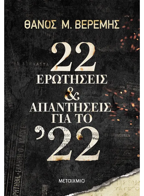 Το βιβλίο 22 ερωτήσεις και απαντήσεις για το ’22 αποτελεί προσπάθεια απλοποίησης ενός σύνθετου ιστορικού φαινομένου, το οποίο συνδυάζει πολιτικές, κοινωνικές, οικονομικές και στρατιωτικές παραμέτρους. Η άφιξη 1.300.000 προσφύγων (και όχι μόνον Ελλήνων) σε μια χώρα με μόλις 5.450.000 πληθυσμό αποτέλεσε το μεγαλύτερο πρόβλημα ενσωμάτωσης σε όλη τη σύγχρονη ευρωπαϊκή ιστορία.