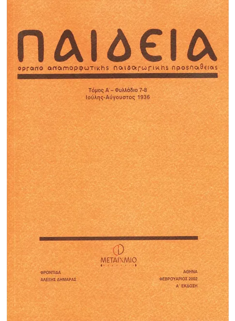 Περιοδικό ΠΑΙΔΕΙΑ Μίλτου Κουντουρά (Τόμος Α’-Φυλλάδιο 7-8, Ιούλης-Αύγουστος 1936)